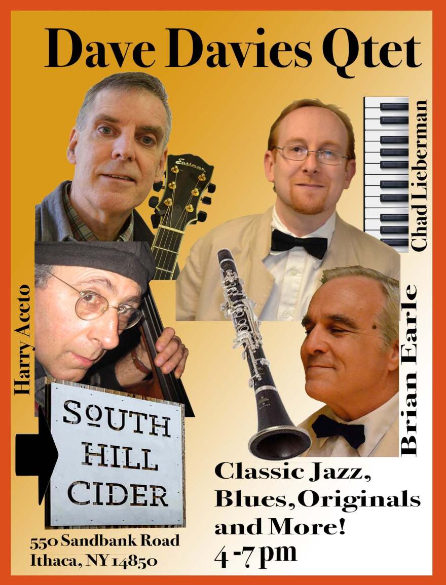 Dave Davies continues his Monday residency on Ithaca’s South Hill, this time with his eponymous Qtet. He’ll be joined by Brian Earle on clarinet, Chad Lieberman on keyboards, and Harry Aceto for an evening of jazz. Blues, and more. Note: Masks will be required when you are not seated. Bring your proof of vaccine for indoor service. Dancing will be allowed with masks on.