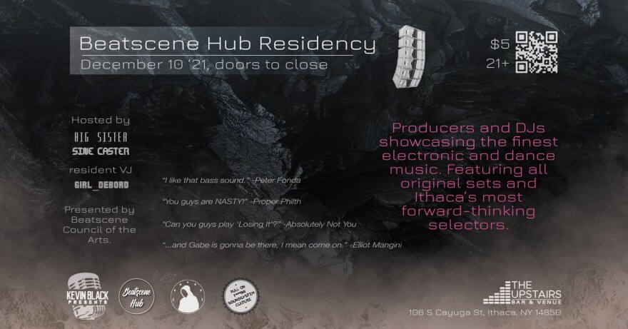 The first installment of the new Beatscene Hub residency kicks off, hosted by Big Sister and Sine Caster. “Beatscene Hub is a family of producers and DJs showcasing the finest electronic and dance music in The Finger Lakes. Featuring all original sets and the region’s most forward-thinking selectors. Join us for high-energy dance music and deep grooves.”