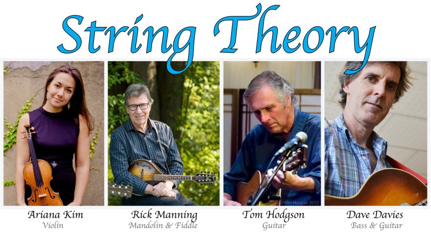 String Theory features violinist Ariana Kim, fiddler-mandolinist Rick Manning, and guitarists Dave Davies and Tom Hodgson performing an eclectic blend of fiddle tunes. “We come from different musical traditions, but share a love of fiddle music. This performance will feature a wide variety of tunes, from Canada through New England and Texas, and South America along with a little solo Bach for good measure. We will play in solo, duo, trio, and quartet configurations and feature a special guest or two. We are confident you will enjoy it as much as we do!”