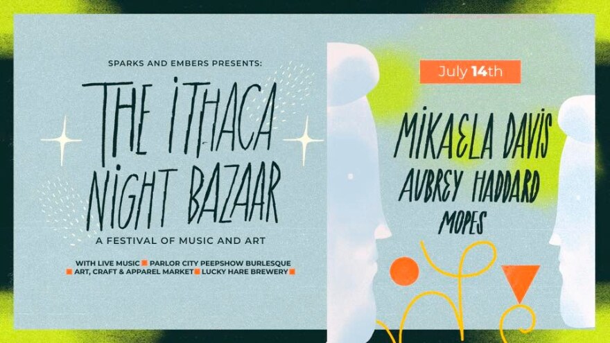 The monthly Ithaca Night Bazaar returns for its third edition, once again featuring more than 30 food, drink, and craft vendors, performances from Parlor City Burlesque, and live music from three excellent acts: Rochester’s Mikaela Davis, NYC’s Aubrey Haddard, and Ithaca’s own Mopes. As always expect “weirdness and wonderfulness” at this eclectic event.
