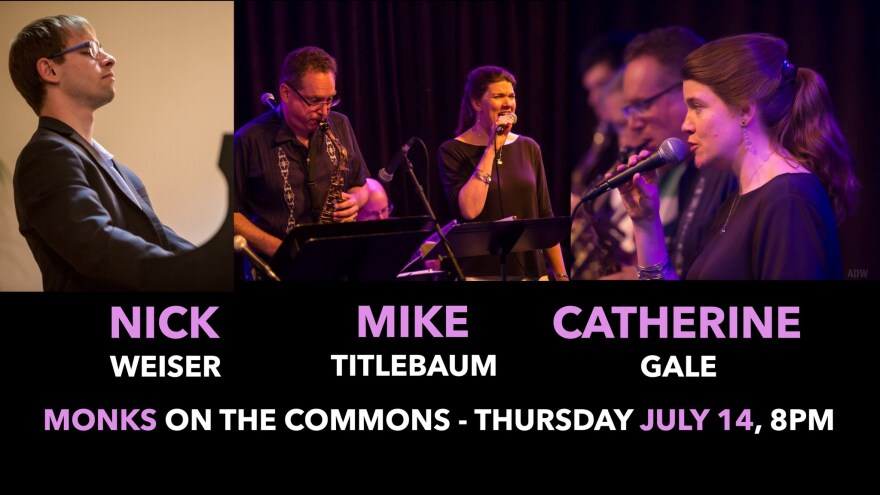 The Marriott Summer Jazz Series continues at Monks on the Commons with the trio of vocalist Catherine Gale, saxophonist Mike Titlebaum and pianist extraordinaire Nick Weiser who’s making a rare Ithaca appearance.
