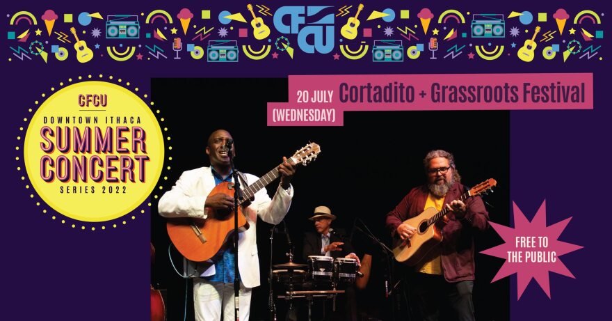 The Downtown Ithaca Summer Concert Series continues with a special pre-GrassRoots Wednesday show featuring Cortadito, who performs the traditional Cuban music of the early 20th century. “From Son Montuno, Guaracha, Boleros, Nengon, and Bolero Son, this dynamic ensemble brings the listener back to a time when Trio Matamoros, or Ignacio Piniero ruled the Cuban music world. The era when popular music was Cuban music and Son Montuno was influencing music throughout the globe.”