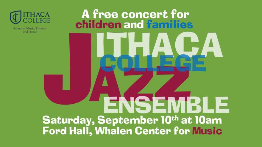 “Get ready to clap and sing along with the Ithaca College Jazz Ensemble! This free one-hour concert will be an enjoyable way for kids of all ages to learn about this great American music.”