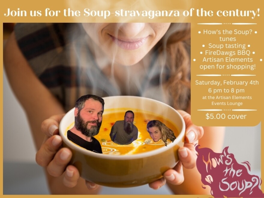 Area band How's the Soup? presents “A Soup-Stravaganza!” “Save the date Soup fans! Here's the event that you never knew you always wanted. We're serving up more soup than you can shake a ladle at! Fire Dawgs BBQ will be available to feed your bellies and How's the Soup? will feed your soul with tasty originals and some smokin' cover tunes. There will be complimentary soup sampling and Artisan Elements will be open for your shopping pleasure.”