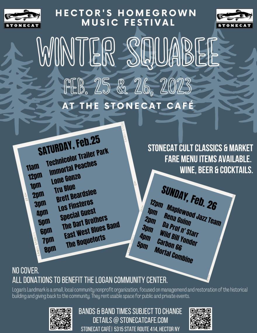 Wintersquabee returns for its winter edition, with several area bands teaming up for a two-day event to raise funds for Logan’s Landmark, a nonprofit community organization. Here’s the lineup (subject to change):