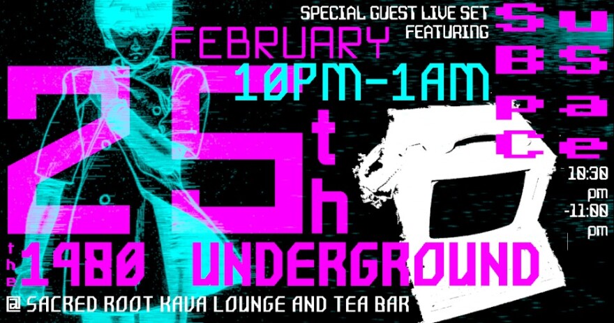 The 1980 Underground returns, offering “Smoke, static, and something new for this new year: A SPECIAL GUEST. DEBUTING BAND SUBSPACE, a brand-new band consisting of former members of Nancy Babich, WILL PLAY A LIVE SET FROM 10:30 TO 11. GET YOUR LOOK ON AND STEP OUT, KIDS.”
