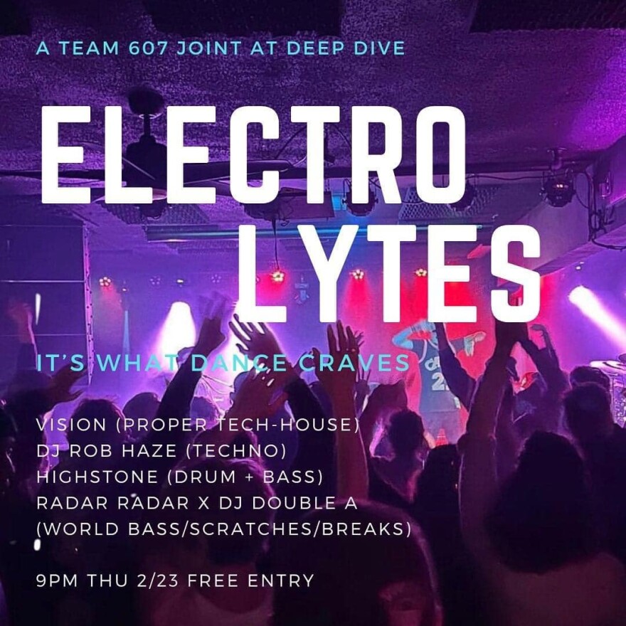 Deep Dive will host the return of Team 607 for “Electro Lytes,” featuring local DJs Vision, Radar Radar and Double A, Highstone, and Rob Haze. “It’s What Dance Craves!” they vow.